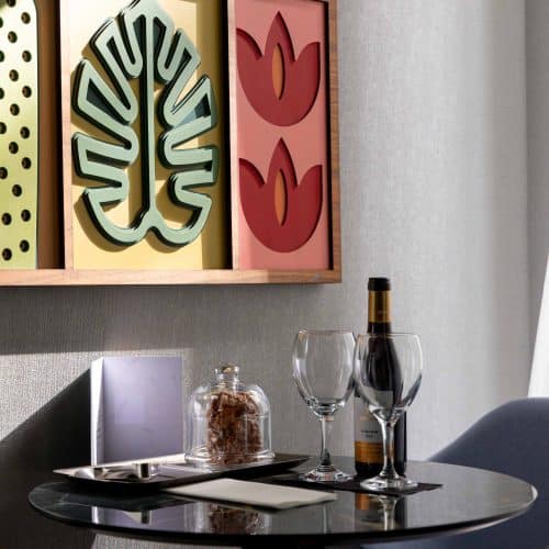 • הקבלה, התמונות בחדרים והשילוט במלון עוצבו בעבודת יד ייחודית על ידי האמן צחי נבו – יוצר UMASQO, שרקם קומפוזיציה צבעונית, שמחה ומרגשת.
