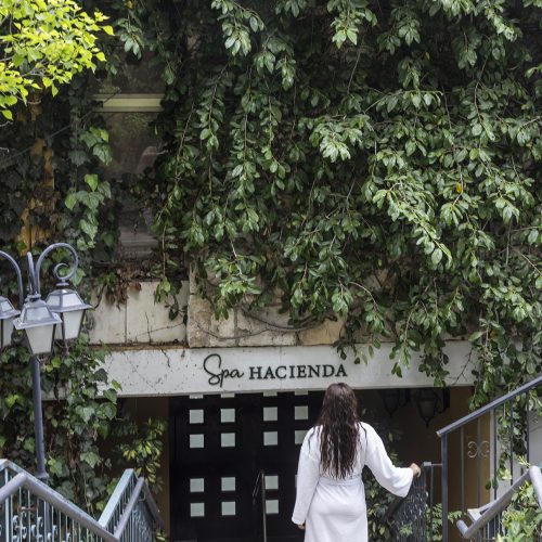 וכניסה למתחם הספא המציע בריכת זרמים, סאוונה יבשה, חמאם תורכי אותנטי.